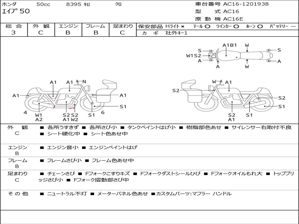 | Номер рамы / VIN | AC16-1201938 |