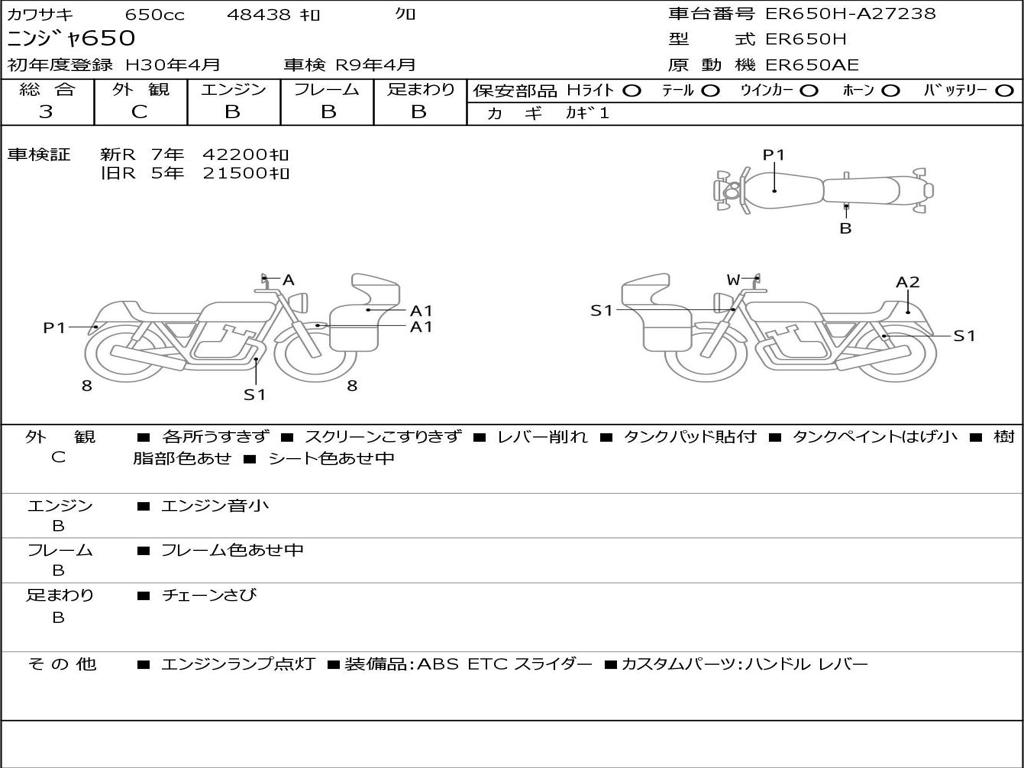 | Номер рамы / VIN | ER650H-A27238 |