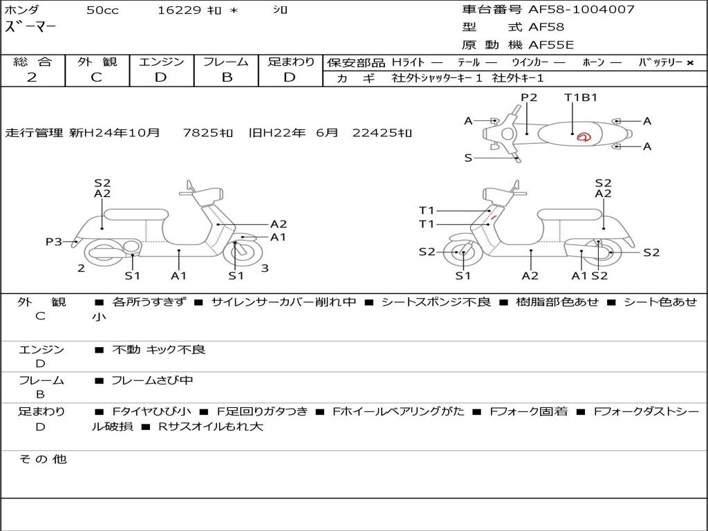 | Номер рамы / VIN | AF58-1004007 |