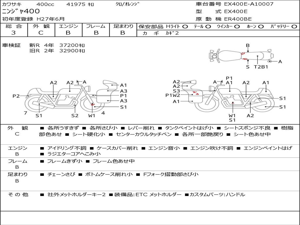 | Номер рамы / VIN | EX400E-A10007 |