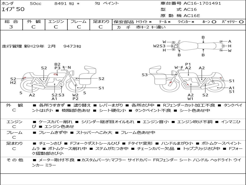 | Номер рамы / VIN | AC16-1701491 |