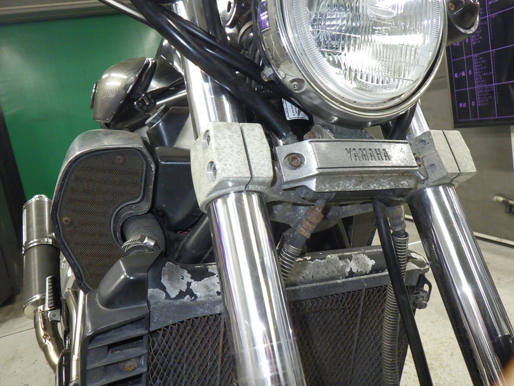 | внешняя часть вилки | следы коррозии <много>, ухудшение, потек масла |