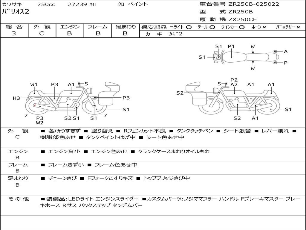 | Номер рамы / VIN | ZR250B-025022 |