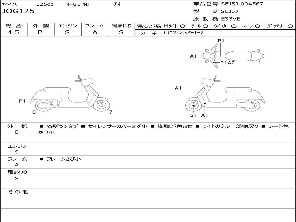 | Номер рамы / VIN | SEJ5J-004567 |