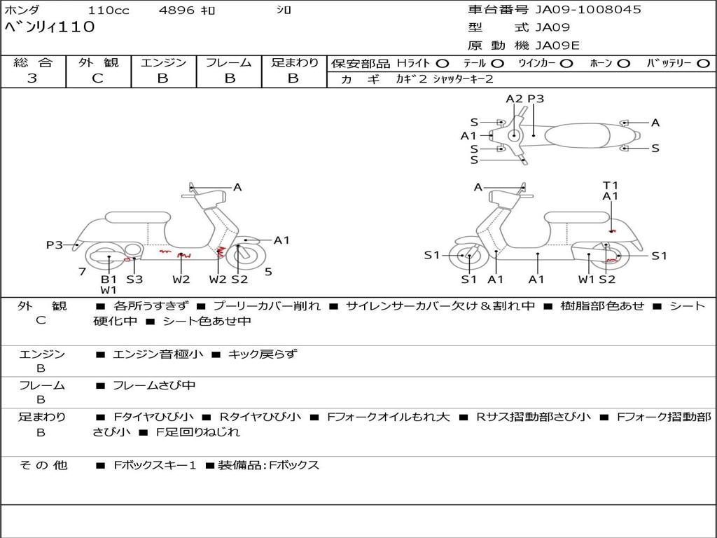 | Номер рамы / VIN | JA09-1008045 |