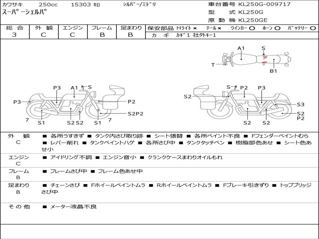 | Номер рамы / VIN | KL250G-009717 |