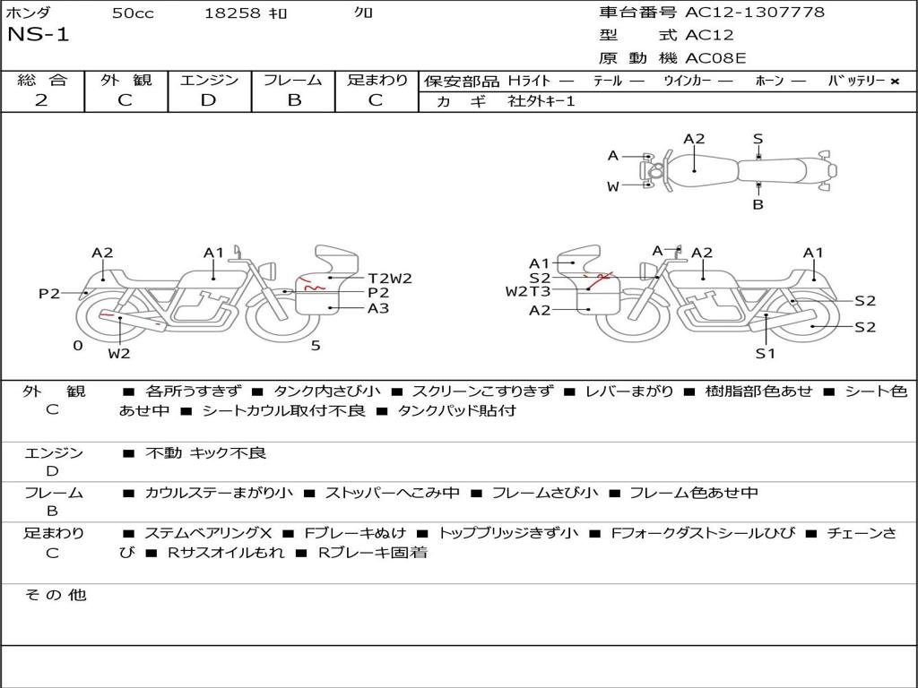 | Номер рамы / VIN | AC12-1307778 |