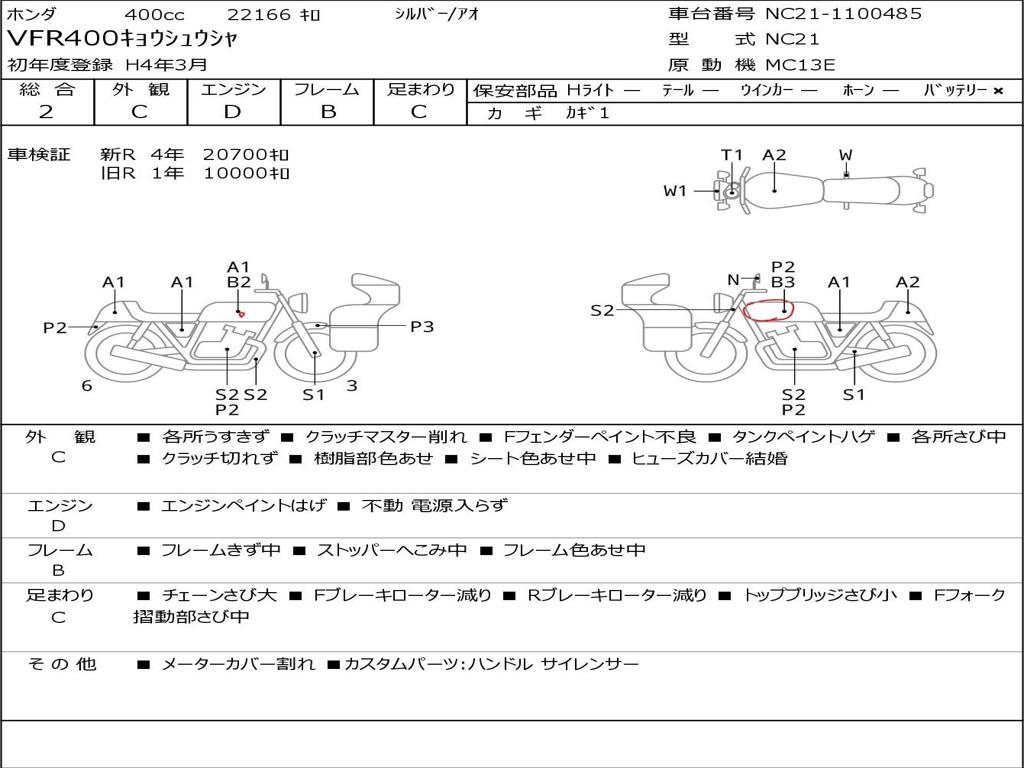 | Номер рамы / VIN | NC21-1100485 |