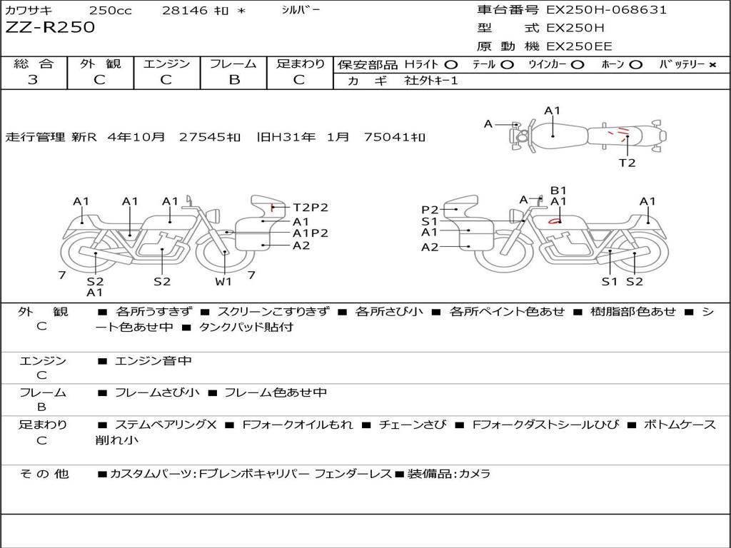 | Номер рамы / VIN | EX250H-068631 |