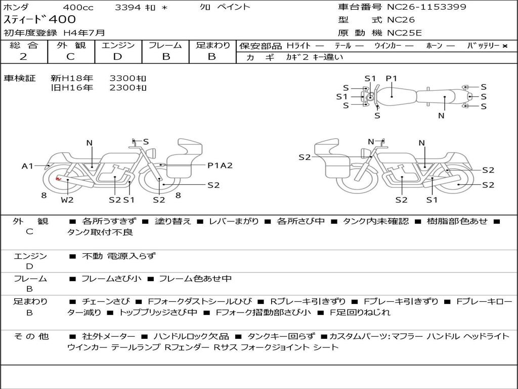 | Номер рамы / VIN | NC26-1153399 |