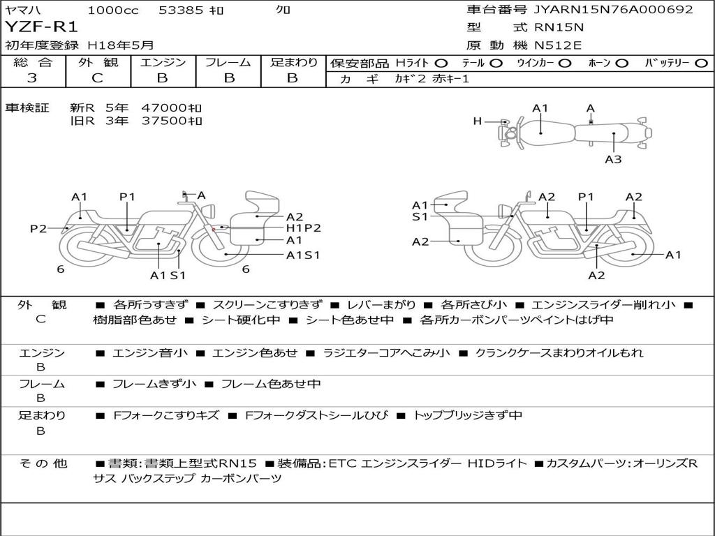 | Номер рамы / VIN | JYARN15N76A000692 |