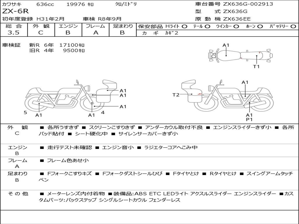 | Номер рамы / VIN | ZX636G-002913 |