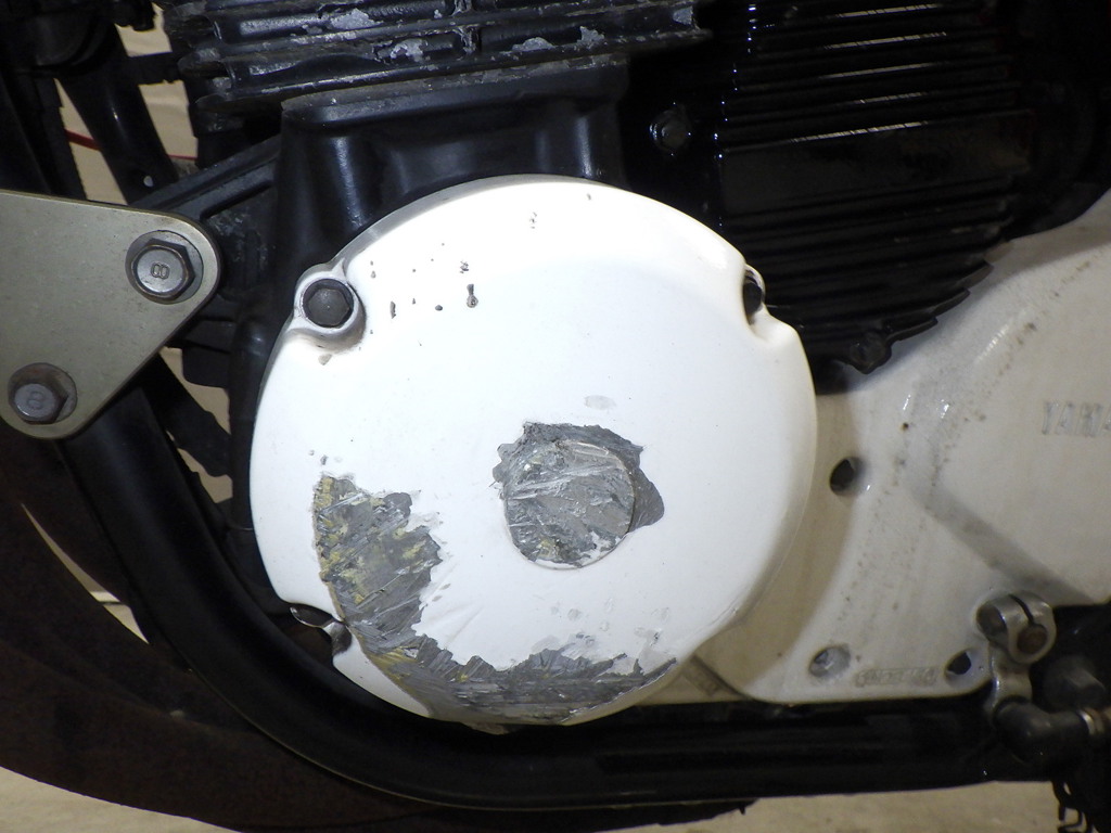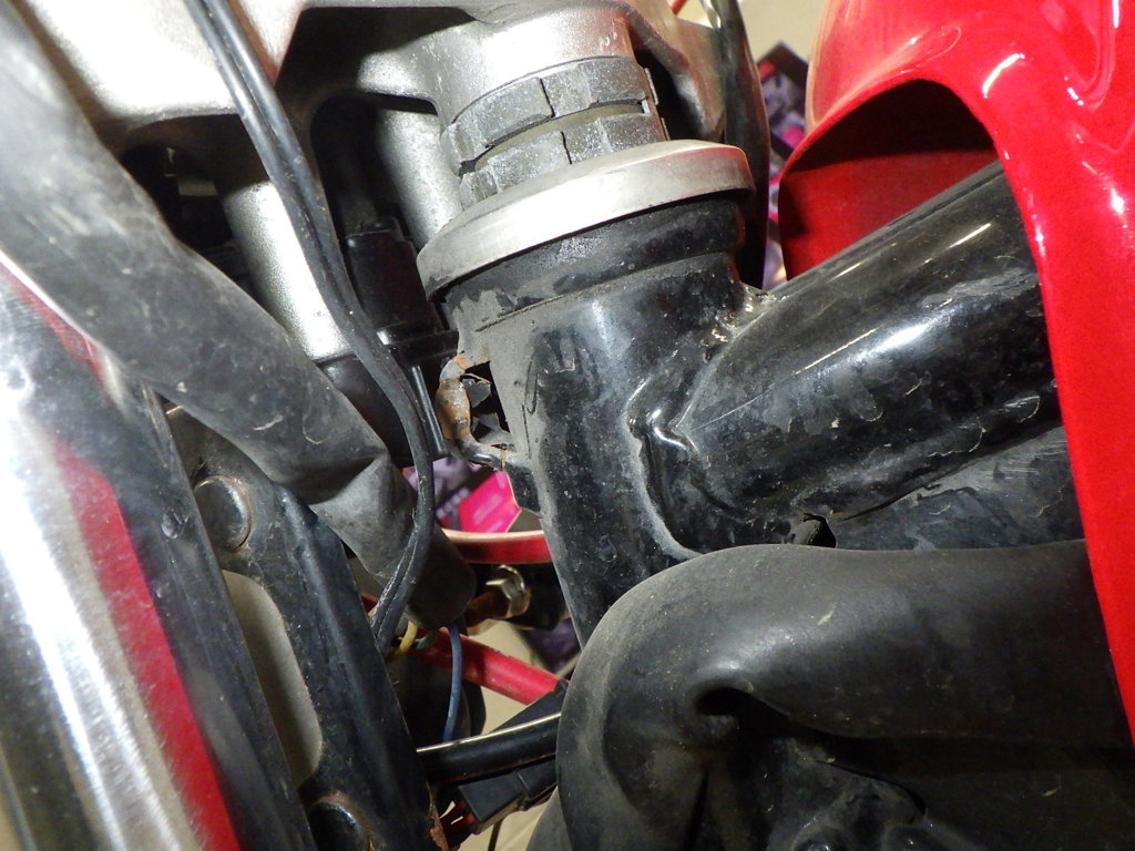 | внешняя часть вилки | царапины <много>, частичная подкраска, потертость, потек масла <много> |