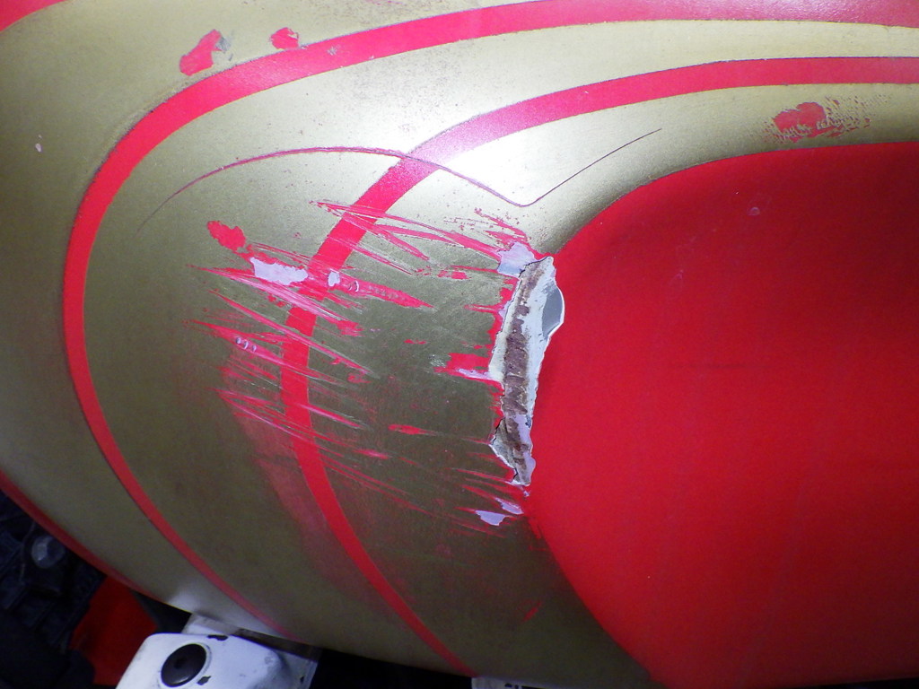 | бензобак | царапины <много>, вмятина, следы коррозии, потертость, исправлен., выцветание краски |