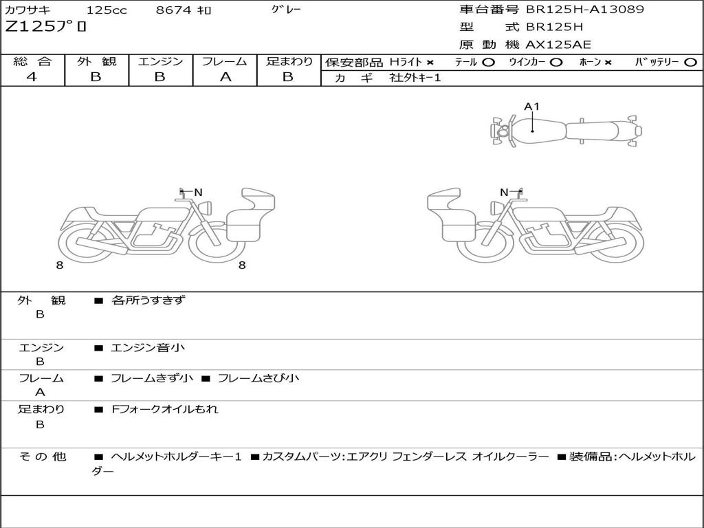 | Номер рамы / VIN | BR125H-A13089 |
