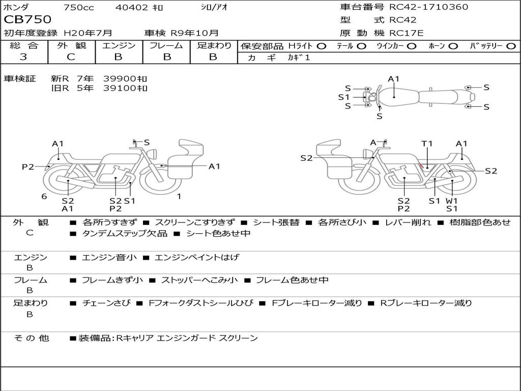 | Номер рамы / VIN | RC42-1710360 |