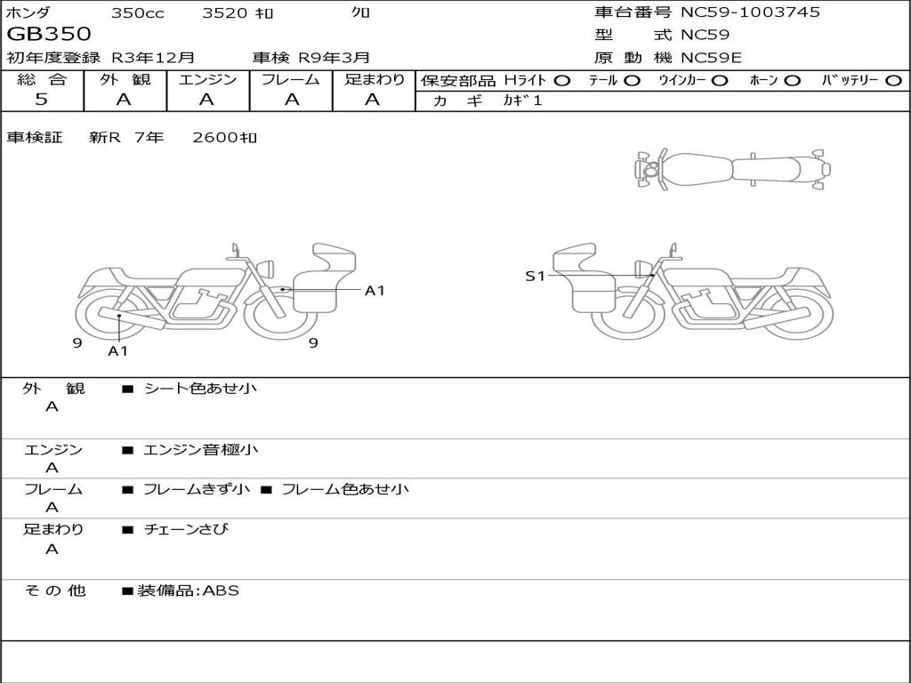 | Номер рамы / VIN | NC59-1003745 |