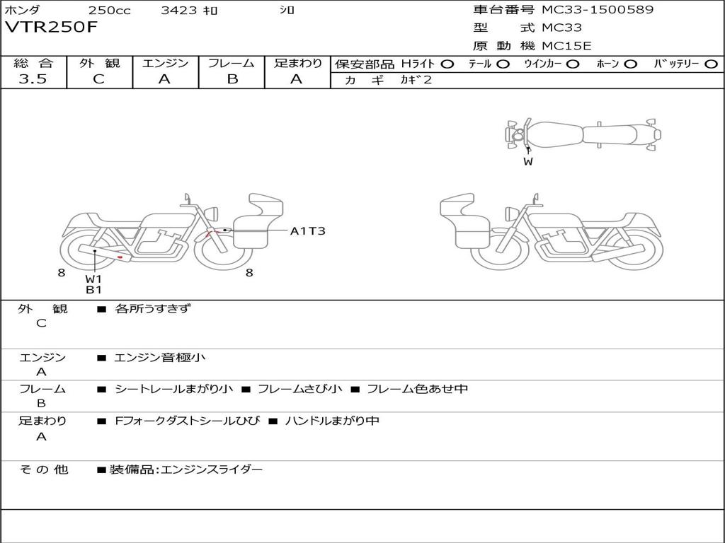 | Номер рамы / VIN | MC33-1500589 |