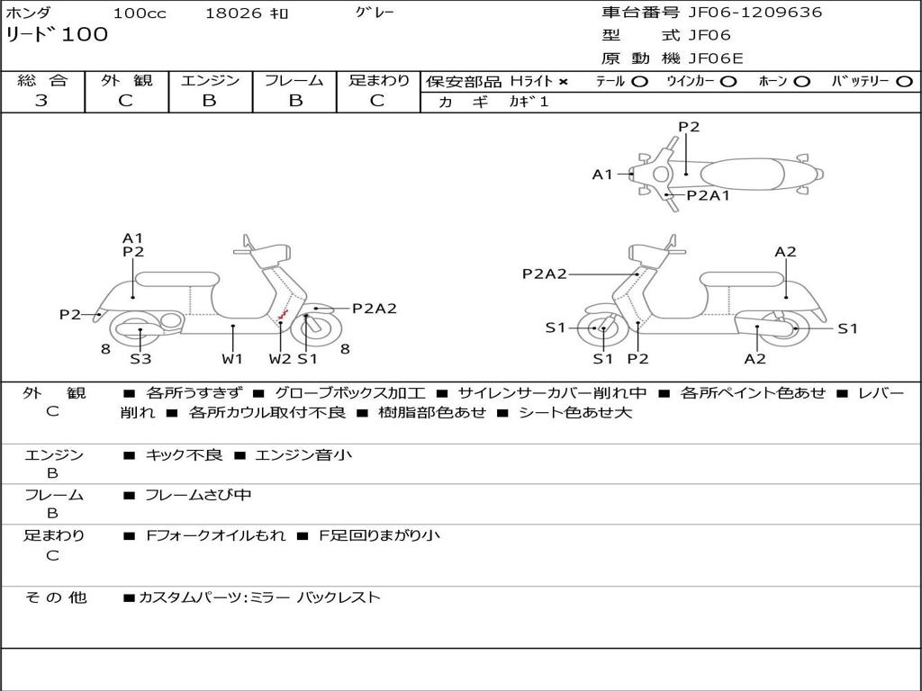 | Номер рамы / VIN | JF06-1209636 |