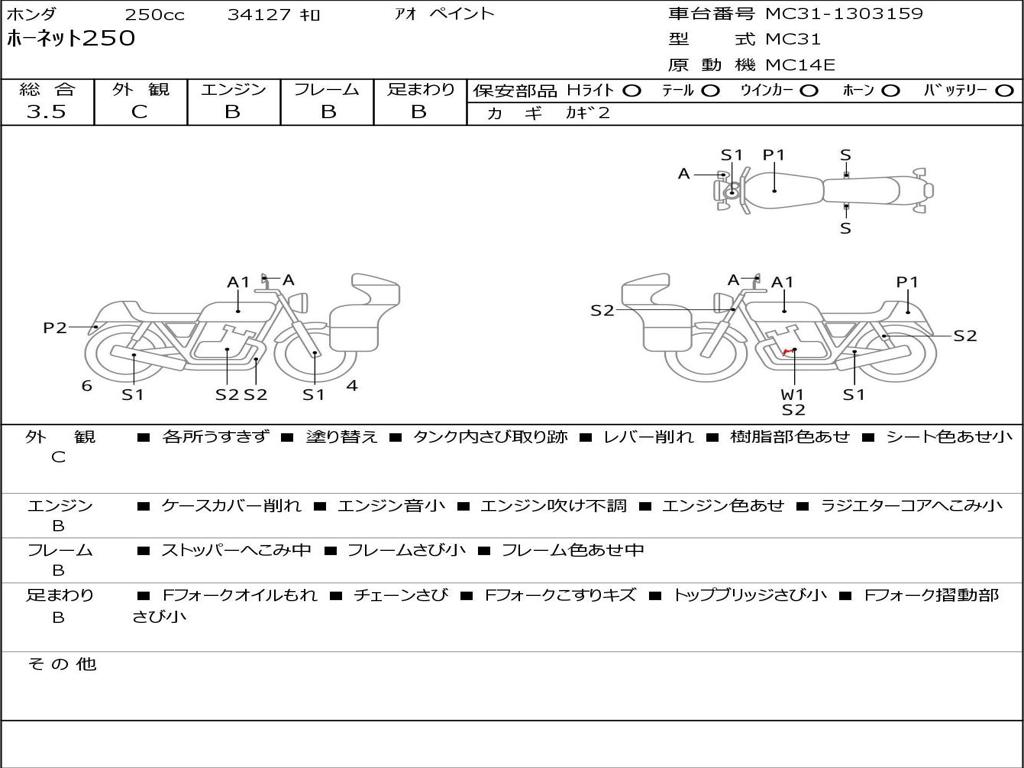 | Номер рамы / VIN | MC31-1303159 |