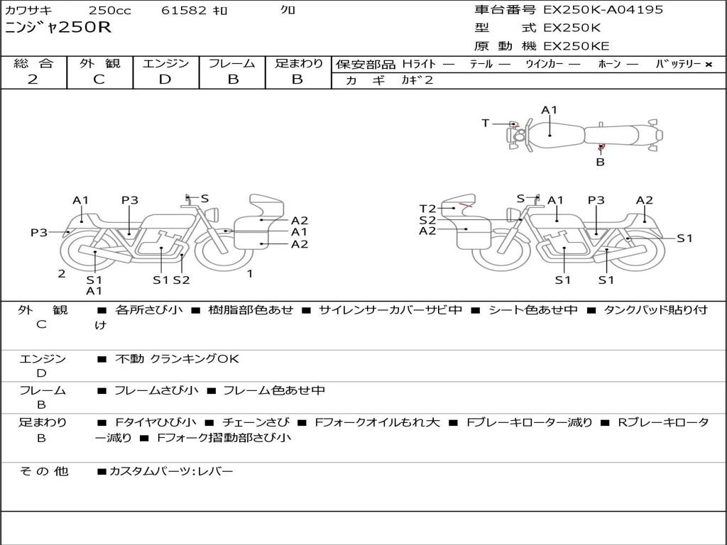 | Номер рамы / VIN | EX250K-A04195 |