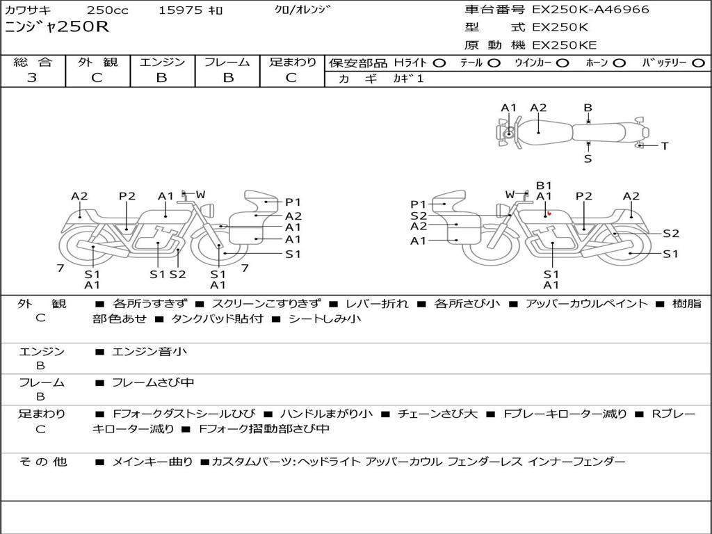 | Номер рамы / VIN | EX250K-A46966 |