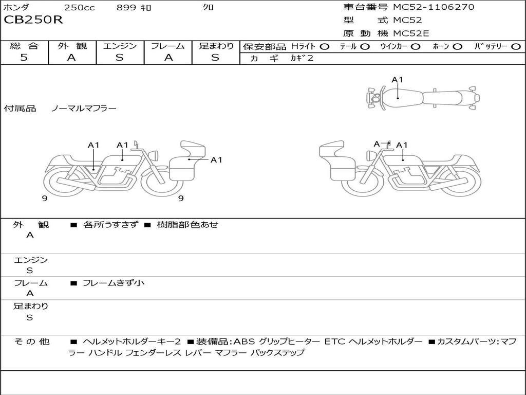| Номер рамы / VIN | MC52-1106270 |