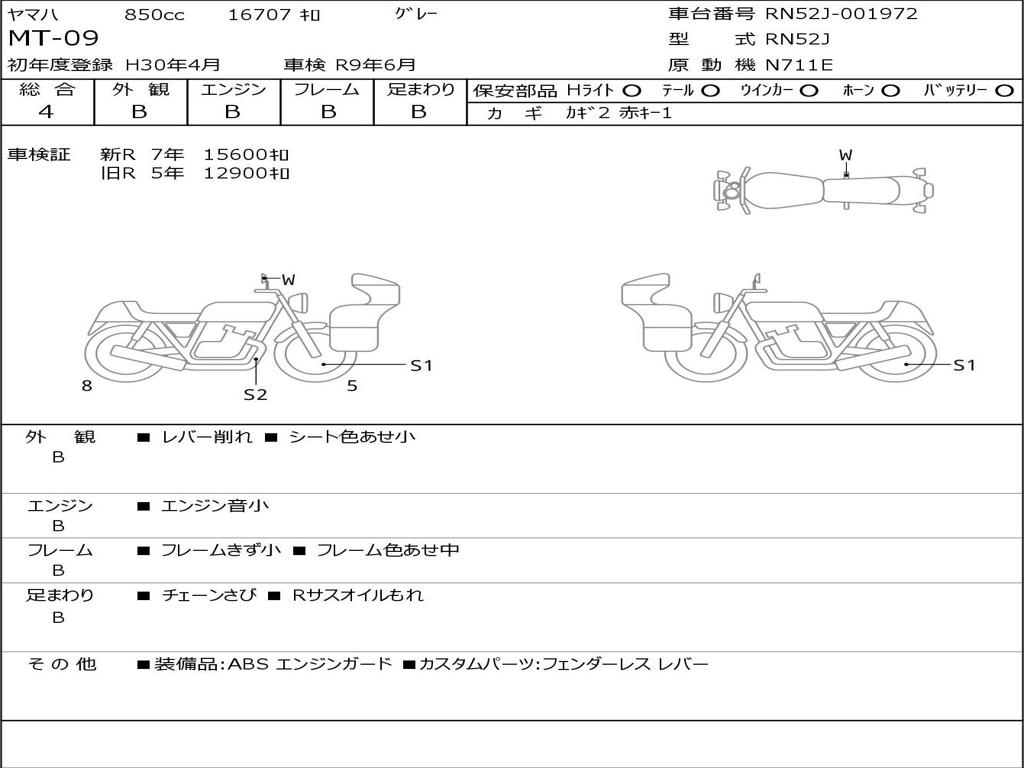 | Номер рамы / VIN | RN52J-001972 |