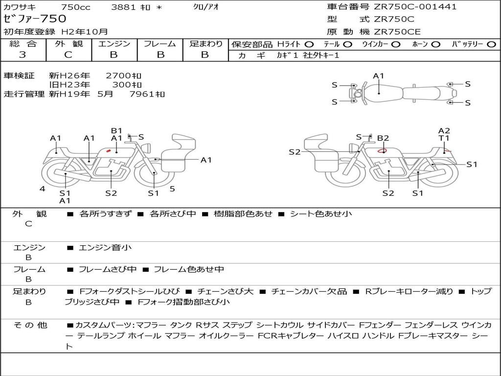 | Номер рамы / VIN | ZR750C-001441 |