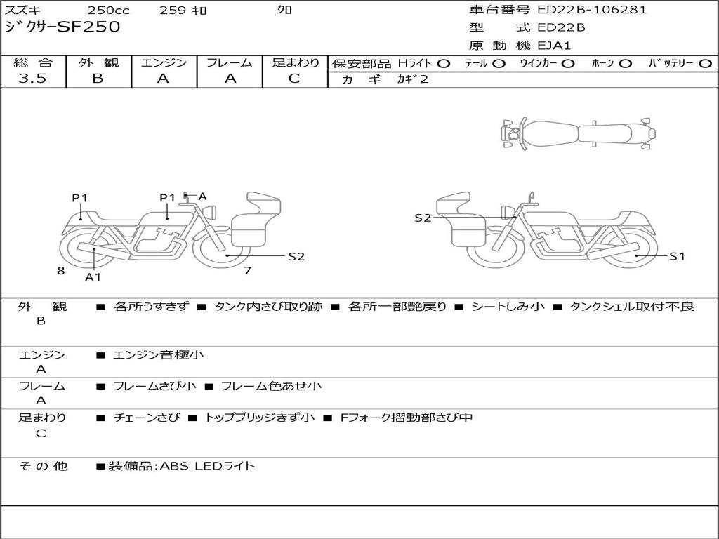 | Номер рамы / VIN | ED22B-106281 |
