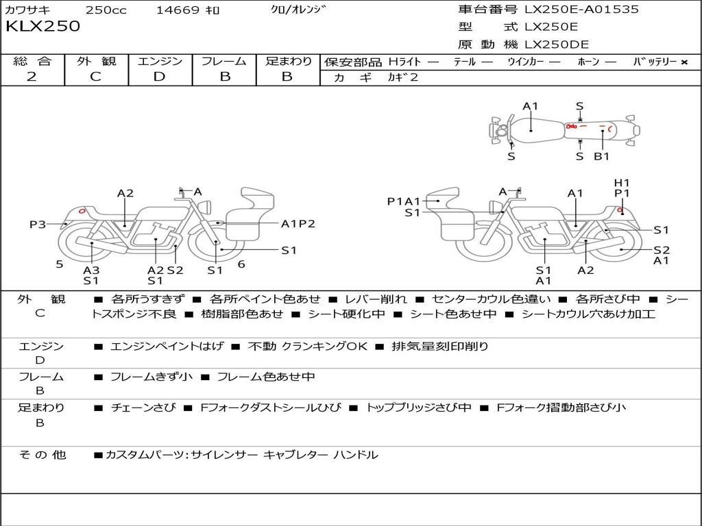 | Номер рамы / VIN | LX250E-A01535 |