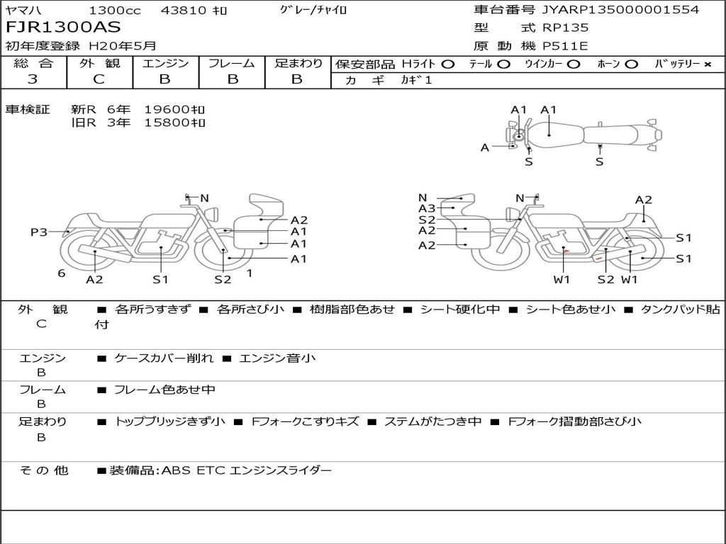 | Номер рамы / VIN | JYARP135000001554 |