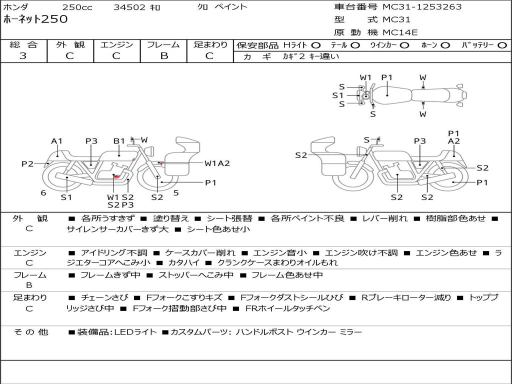 | Номер рамы / VIN | MC31-1253263 |