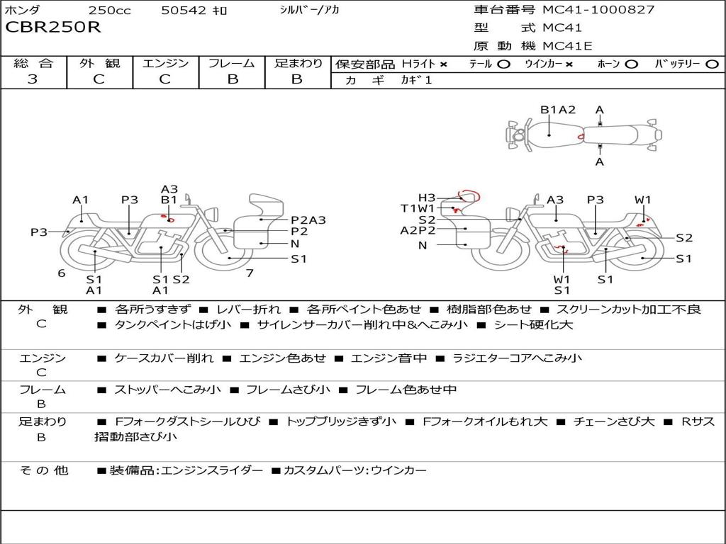 | Номер рамы / VIN | MC41-1000827 |