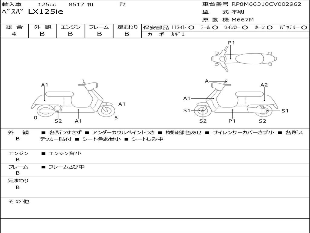 | Номер рамы / VIN | RP8M66310CV002962 |