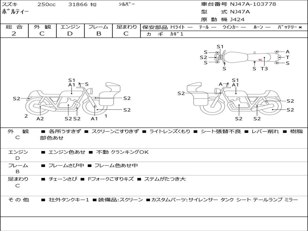 | Номер рамы / VIN | NJ47A-103778 |