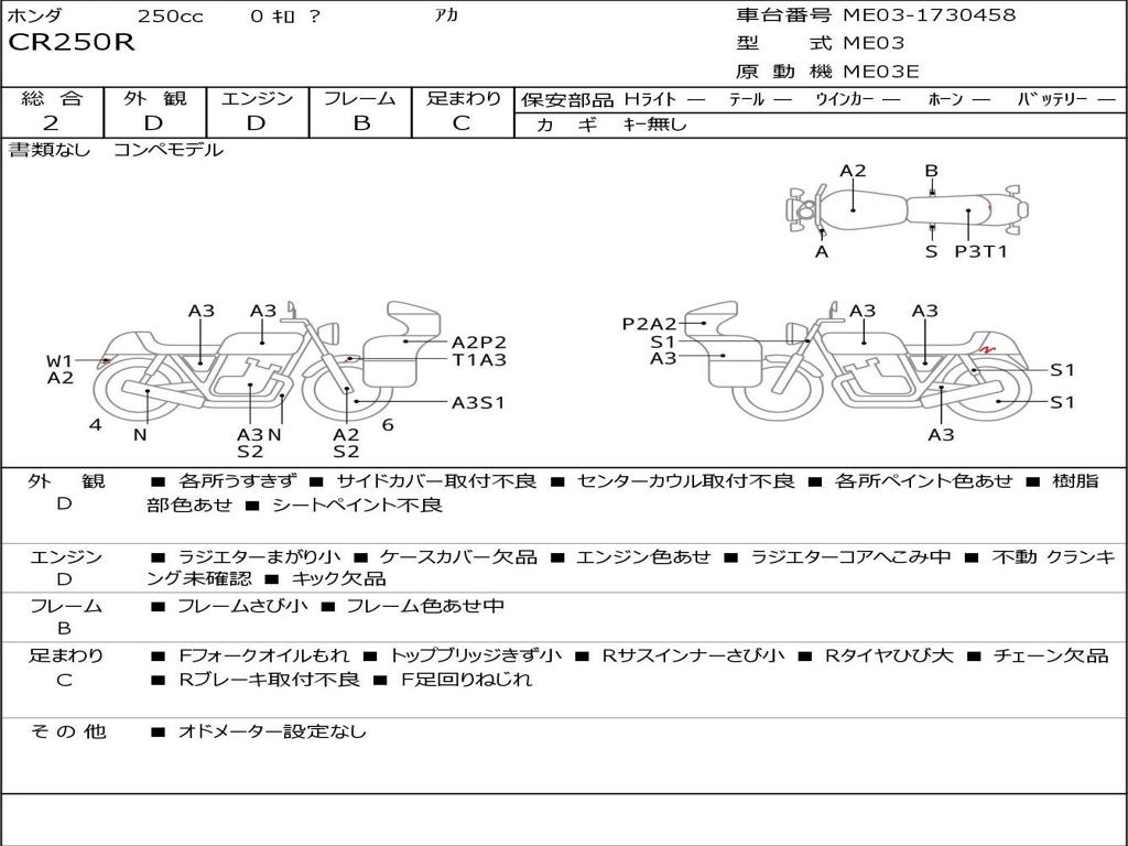 | Номер рамы / VIN | ME03-1730458 |