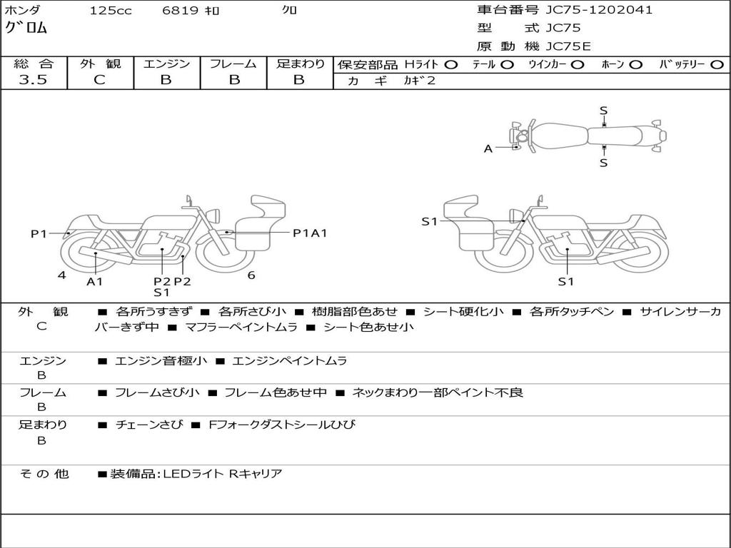 | Номер рамы / VIN | JC75-1202041 |