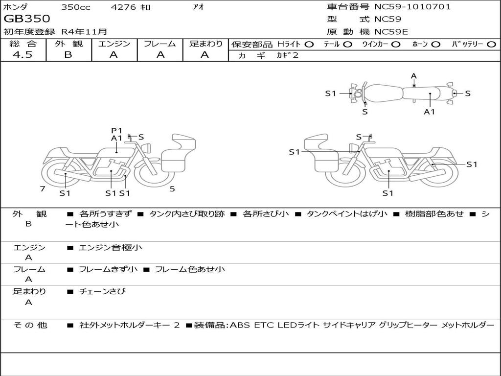 | Номер рамы / VIN | NC59-1010701 |