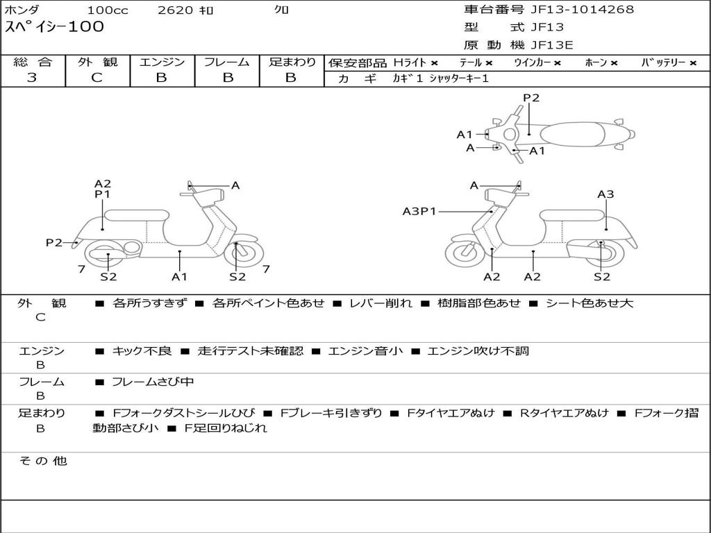 | Номер рамы / VIN | JF13-1014268 |
