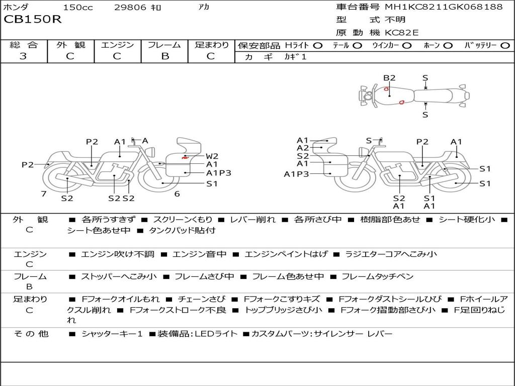 | Номер рамы / VIN | MH1KC8211GK068188 |