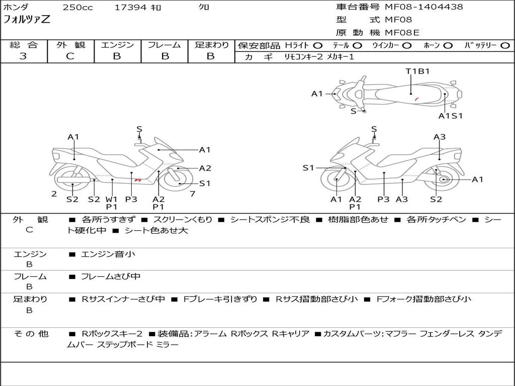 | Номер рамы / VIN | MF08-1404438 |