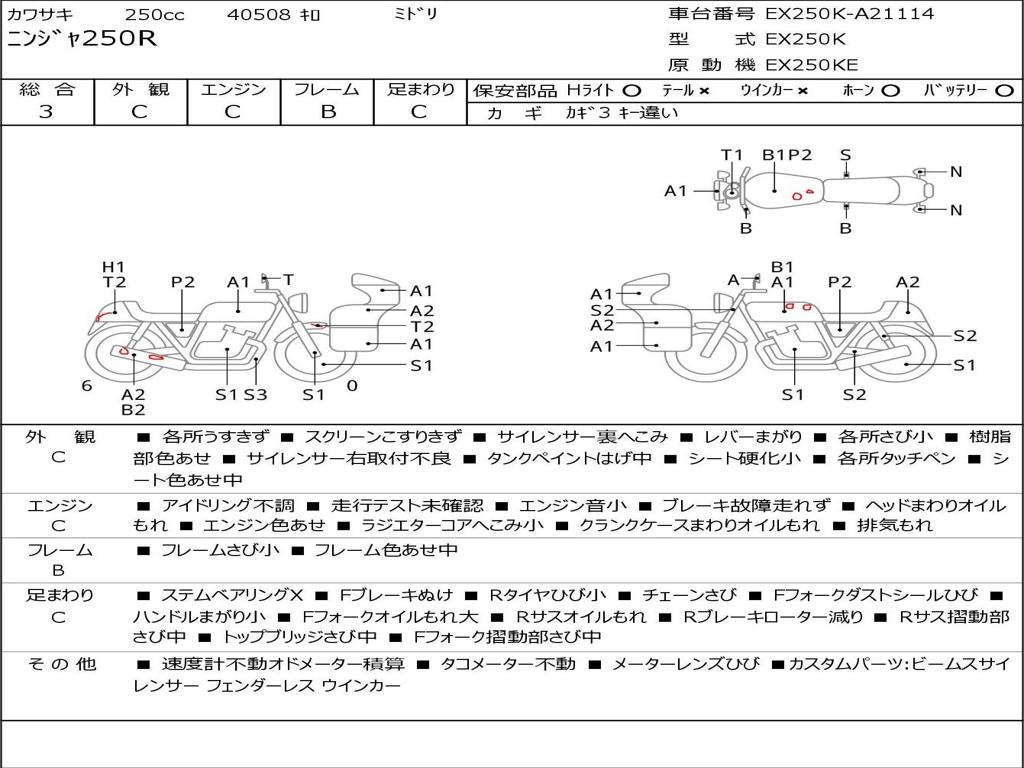 | Номер рамы / VIN | EX250K-A21114 |