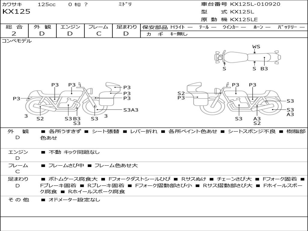 | Номер рамы / VIN | KX125L-010920 |