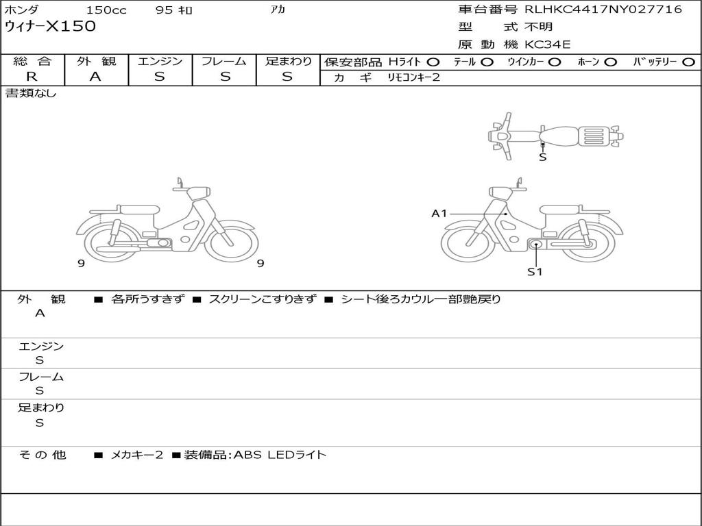 | Номер рамы / VIN | RLHKC4417NY027716 |