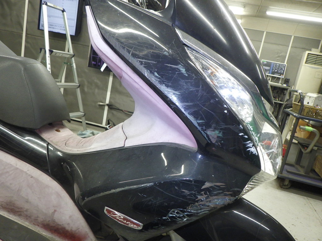 | переднее крыло | царапины <много>, трещины <много> |