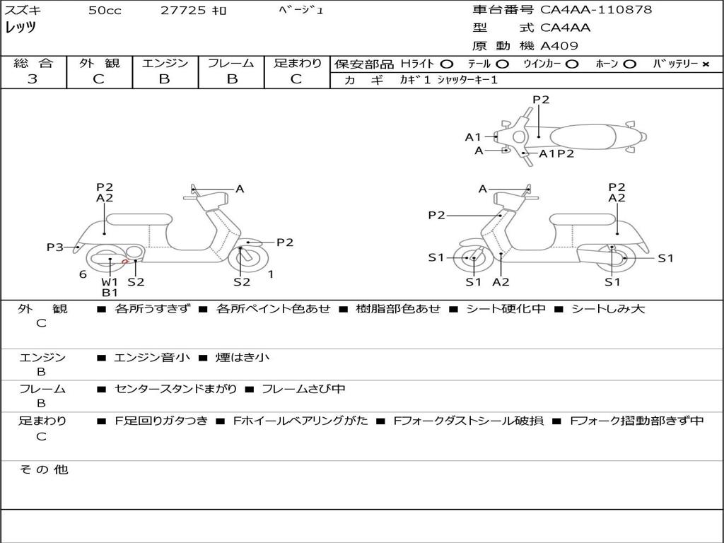 | Номер рамы / VIN | CA4AA-110878 |