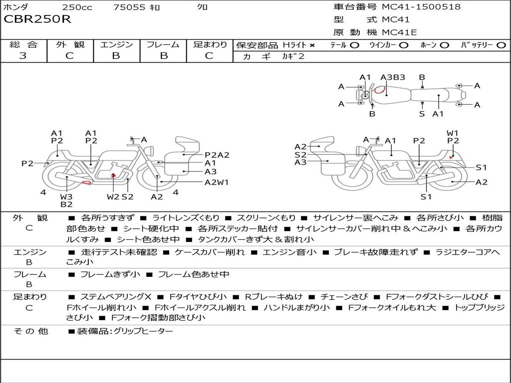 | Номер рамы / VIN | MC41-1500518 |