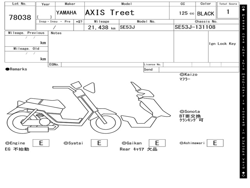 | Номер рамы / VIN | SE53J-131108 |
