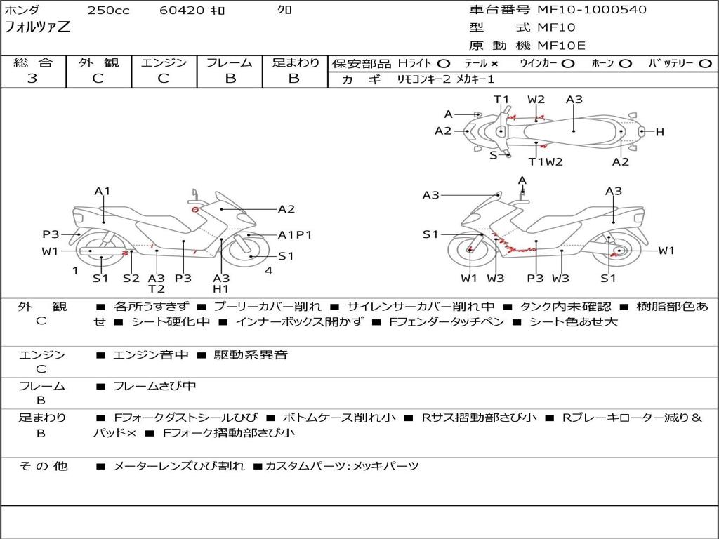 | Номер рамы / VIN | MF10-1000540 |